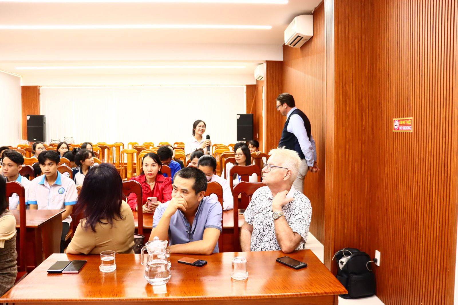 Nhiều câu hỏi của HSSV liên quan đến ngành nghề đào tạo, yêu cầu trình độ tiếng Đức, chi phí, thời gian học tập và cơ hội việc làm sau tốt nghiệp đã được giải đáp trực tiếp, rõ ràng, giúp HSSV có thêm thông tin để định hướng tương lai.